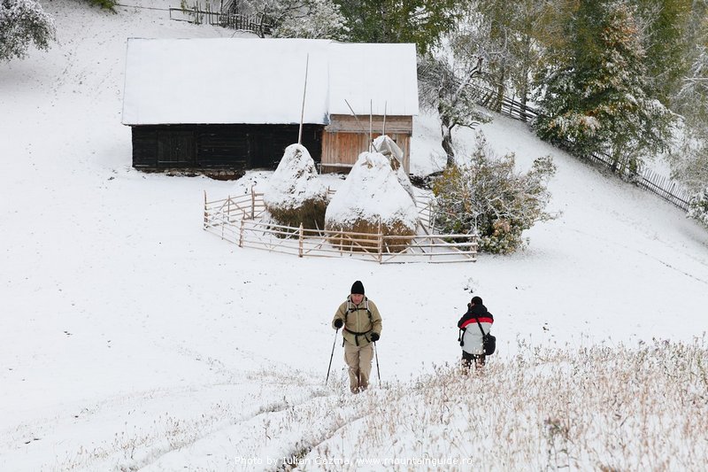 Saturday we did a classic wak, from Simon village to Moeciu de Sus, unfotunately not photos from that day, even if was still … autumn. But on saturday evening was start sonwing, so Sunday was a totally different landscape around us!