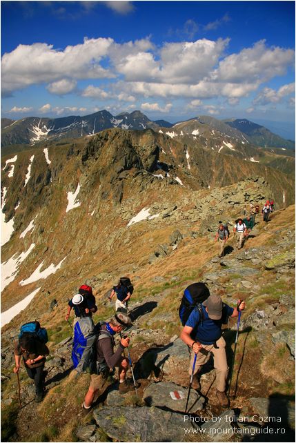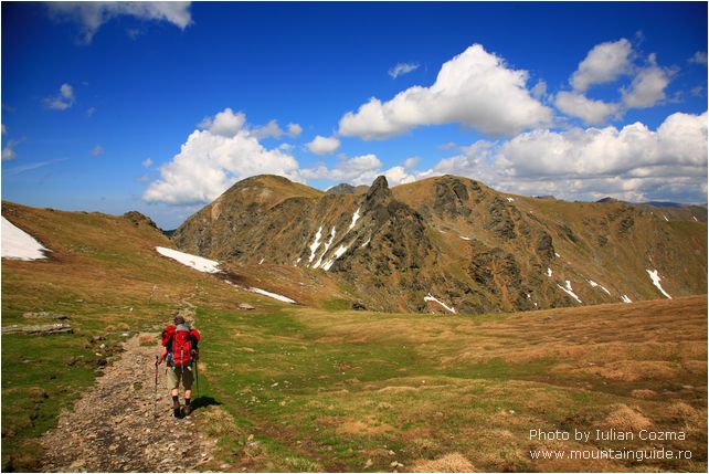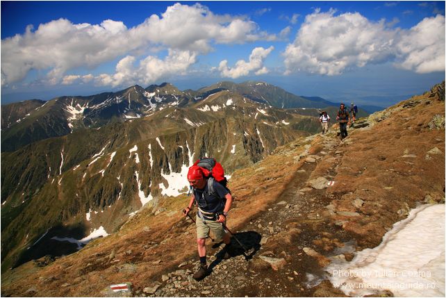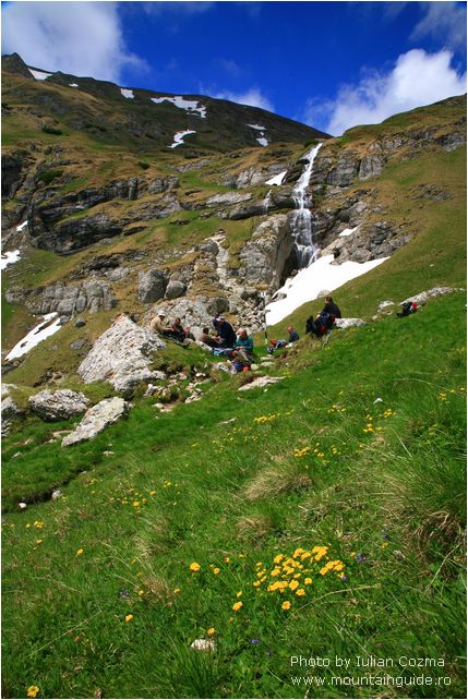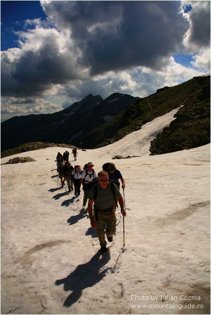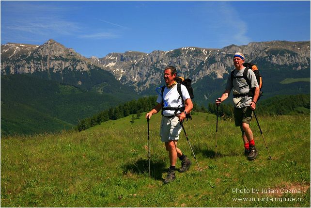 Hi there, From today, June 6th I will upload new pictures every two days, from a tour in Bucegi and Fagaras mountains. The summer season for hiking on mountains just start today, with the traverse of Bucegi mountains from Babele to Omu peak, and nice descending to Pestera hotel. On the plateau of Bucegi mountains were a little bit of wind, not too much sun, so gloves, wind layers were the most appreciates pieces from our equipment. After a tea break at Omu peak we start easily to descent to Pestera hotel were we are now. The weather was on our side on Ialomita valley, and we arrive safely and dry 😉 at the destination. Tomorrow will traverse over Saua Strunga saddle to Transylvania to Moeciu de Sus village, and after we go to Fagaras mountains. If you think to go to Fagaras mtn, do not forget at home the crampons, because are still snow fields what can be dangerous for traverse especially early in morning.
