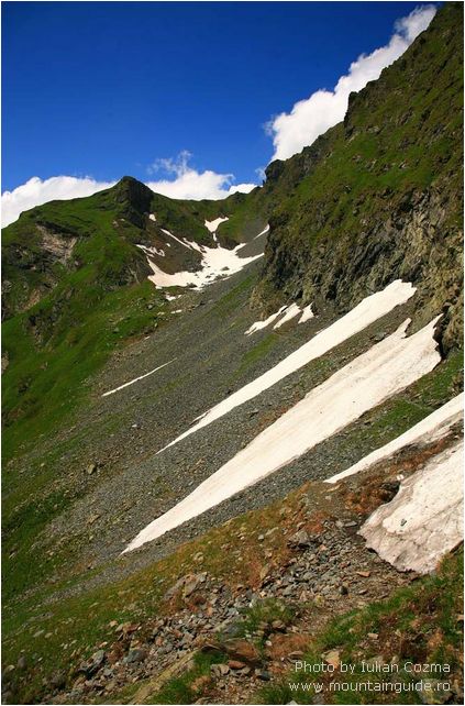 The tour start with the traverse of Bucegi mountains, Sunday June 20th, from Babele hut to Omu peak, and down to Moeciu de Sus village. The rest of the tour were in Fagaras mountains, traversing the main ridge of Fagaras mountains from Breaza village (Zarna shelter) to Avrig town (Barcaciu chalet). I can’t say that the weather were the best in the world, but the tour were a nice one, and the company of Eran was very instructive and very nice. We slept on Zarna and Vistea Mare huts, and the other 3 nights in Podragu, Balea Lac and Negoiu chalets. Traversing the main ridge of Fagaras in this period is a very nice tour, very little people on the ridge, but a lot of flowers. Anyway, traversing Fagaras ridge on this period require a good preparation and good equipment, otherwise the hike can have a bad end. Of course, we had all what we need, so the tour was a success!