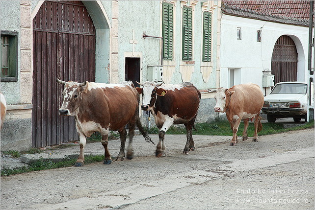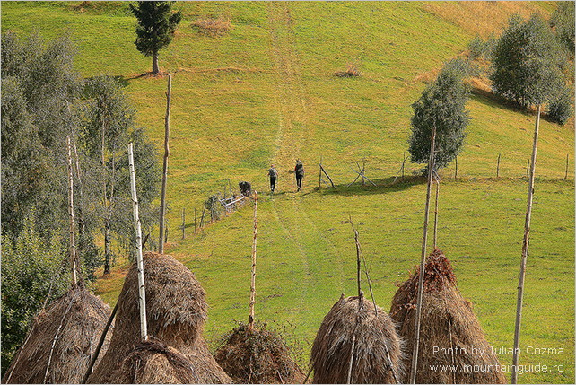 Thanks to Iulian Cozma , my cousin Britt and I had a fantastic and eventful week in Romania from the 19th to the 26th of September. On the first day , in the Bucegi Mountains, the sky was clear and the sun was shining as it did throughout the week. From Sinaia we took the cable car 700 m up till we were above the tree line. It was barren and cold, so we had to put on our hats and gloves. We walked 300 very long meters up to Omu Peak. Here we sat, in the sun, in front of a wooden cottage where one could buy soup, coffee and very sweet tea, and enjoyed the view over the mountain. We looked forward to a week of delightfully tough mountain tramping! Unfortunately an old knee injury was revived by a rather lengthy descent, so that in the evening it was clear to us that we would not be able to continue our week on the same ambitious level . Reluctantly we informed Iulian of this. Like a true pro he just took it in his stride and within five minutes he had, on the basis of his vast experience, outlined a different route of easier trails for us and in the same breath he booked new pensions and canceled others that did not fit into the revised plan. Moreover, the day after he let us have a day of rest and sightseeing in the pleasant Old Town of Brasov. Here it turned out that not only does Iulian know something about mountains, he is also knowledgeable about the history and culture of Romania and above all – Romanian cakes! Between sights , and while we enjoyed Iulian’s fun and informative company, we were literally stuffed with cakes, not only once but twice ! The day was rounded off with yet another couple of cakes that Iulians very sweet wife gave us to enjoy back home at the hotel. What a day ! During the remaining four days we walked through one picturesque mountain area after another, we stayed in the pleasantest pensions. And high up in the Fagaras Mountains, that are more barren than The Bucegi and yet particularly spectacular, we stayed in one incredible hotel, the Balea Lac – virtually built on a lake which , smooth as a mirror, reflects the scenery around it. We saw chamois elegantly galloping down a mountain slope. We saw a lot of ravens. We were accompanied for a whole day by a very nice dog. We were offered walnuts, fresh from the tree, by an old shepherd. Last but not least , Iulian took us down to his grandmothers village where we stayed the night at her sister’s house. We had a long amazing conversation with Silviu, an unforgettably friendly man who showed us everything they owned . . . The pigs , the chickens, the potatoes ( the small ones for the pigs ! ) , the hat that he wears for Christmas and his pride – the locker with his tools.