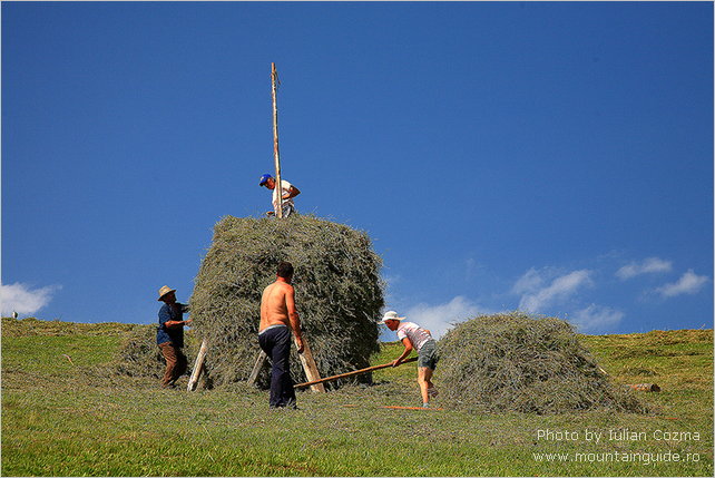 Greetings, You may see some photos from Fagaras mountains and from the area of Bran castle villages, Moeciu de Sus and Poarta. The photos were taken between July 20-28. On the first day of the trip we, Silja, ?, Thomas, Rosana and me, Iulian, traverse Bucegi mountains, from Sinaia to Bangaleasa valley, over Omu peak. Between Babele rocks and Omu peak were a lot of people, like on boulevards of Bucharest, but on the way down to Moeciu de Sus nobody disturb us, and this was very nice! After this day we travel to Fagaras mountains, to Negoiu chalet, with a lunch stop at Barcaciu hut. The mushroom stew from Barcaciu hut was very tasty and we were happy to eat something so delicious! From Negoiu hut we did a round tour on main ridge of Fagaras, Negoiu hut – Scara saddle – Serbota peak – Serbota north ride – Negoiu hut, and after this we descent to go to Balea lake! After Fagaras mountains we move our tours near Bran village, on the hills of Moeciu de Sus and Simon villages. Again the weather was very nice, and we took a lot of photos, as you may see!